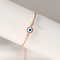 This rose gold plated 92.5 sterling silver bracelet, features delicate white stones set along its band with a captivating round evil eye centerpiece.