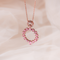 A delicate round pendant adorned with shimmering pink stones, gracefully suspended from a rose gold finish sterling silver (92.5) chain, is the perfect blend of warmth and elegance.