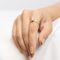 Yellow gold polish ring , perfect for everyday use, Single Solitaire like stone in ' round brilliant cut ' with several small stones on the side of the ring.