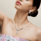 White pearls set with bright green stones. long earrings and rhodium plated.